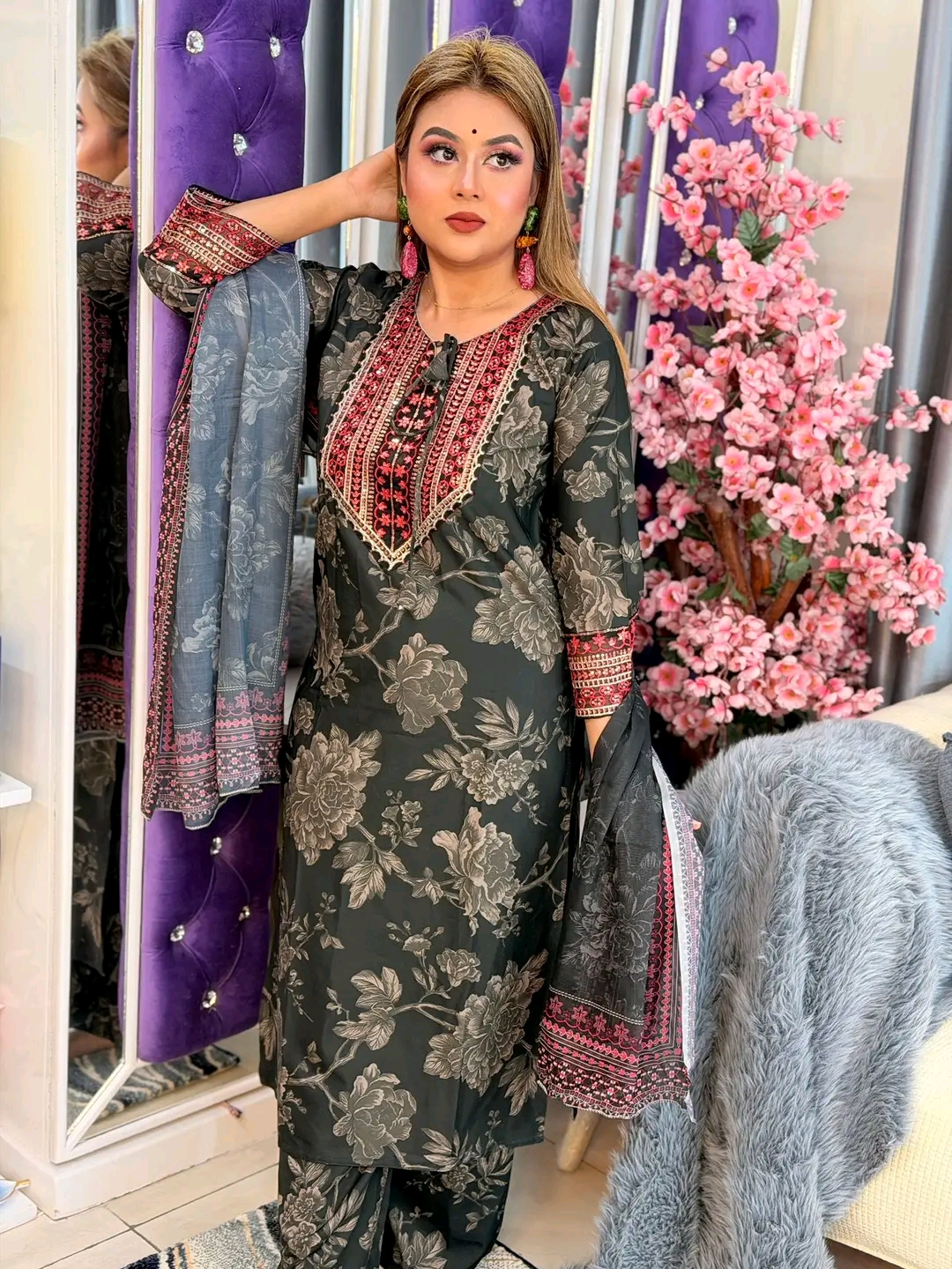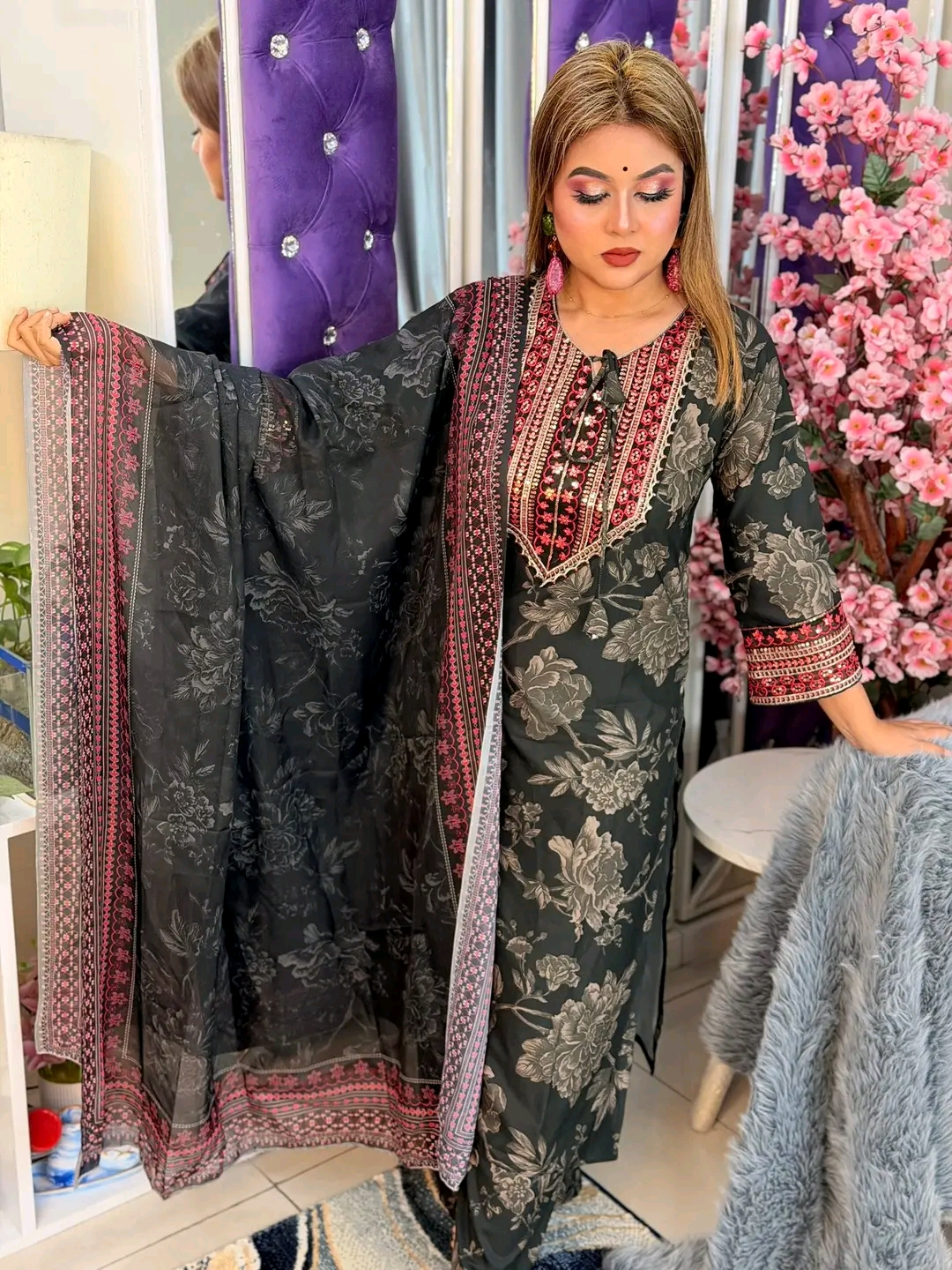 𝗣𝗮𝗸𝗶𝘀𝘁𝗮𝗻𝗶 𝗜𝗻𝘀𝗽𝗶𝗿𝗲𝗱 𝗘𝗹𝗲𝗴𝗮𝗻𝗰𝗲 ✨ 💃 Sequence Embroidery with Premium Printed Charm 🪡 Fabric: Indian Cherry Georgette (Kameez & Pant) 🌸 Dupatta: Soft Georgette with Lace Work 📏 Kamiz Long: 44" (All Sizes) 📏 Pant Long: 39" (Waist Free Size) 📌 Body Size: M | L | XXL