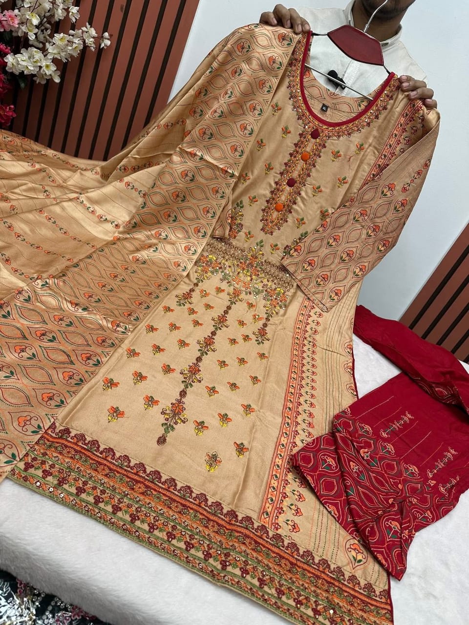 🌿 𝐑𝐞𝐚𝐝𝐲 𝐭𝐨 𝐖𝐞𝐚𝐫. 𝐑𝐞𝐚𝐝𝐲 𝐭𝐨 Ex𝐩𝐫𝐞𝐬𝐬. 🔥 📍𝐀 𝐛𝐞𝐚𝐮𝐭𝐢𝐟𝐮𝐥𝐥𝐲 𝐭𝐚𝐢𝐥𝐨𝐫𝐞𝐝 𝐭𝐡𝐫𝐞𝐞-𝐩𝐢𝐞𝐜𝐞 𝐭𝐡𝐚𝐭 𝐛𝐥𝐞𝐧𝐝𝐬 𝐜𝐨𝐦𝐟𝐨𝐫𝐭 𝐰𝐢𝐭𝐡 𝐭𝐢𝐦𝐞𝐥𝐞𝐬𝐬 𝐬𝐭𝐲𝐥𝐞 ☘️ ✅ 𝐉𝐮𝐬𝐭 𝐰𝐞𝐚𝐫 𝐢𝐭 𝐚𝐧𝐝 𝐬𝐭𝐞𝐩 𝐨𝐮𝐭 𝐰𝐢𝐭𝐡 𝐜𝐨𝐧𝐟𝐢𝐝𝐞𝐧𝐜𝐞 Fabric: Chinigura Work: Embroidery