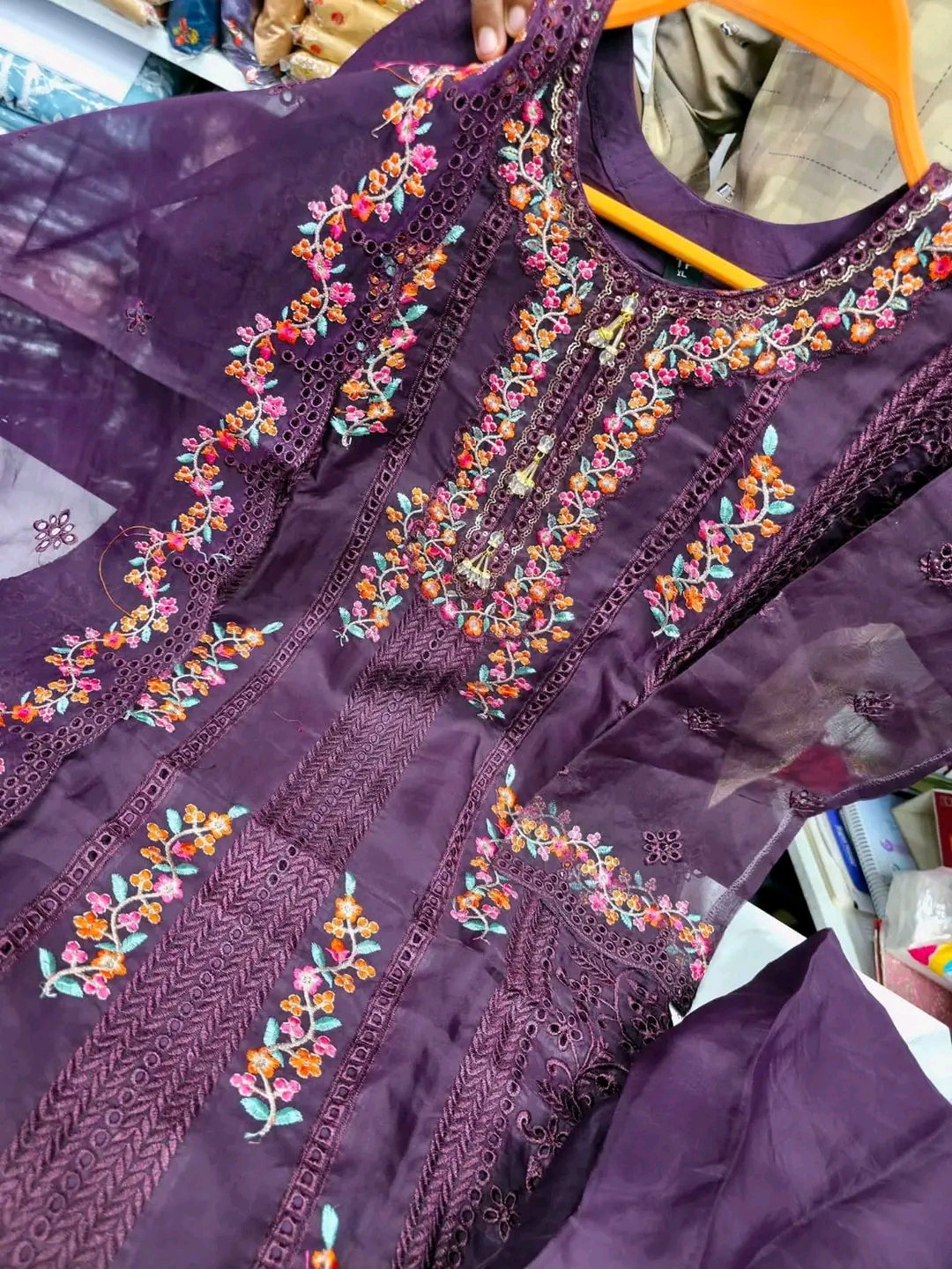 Premium Organza Ready-Made Dress with elegant Sequins & Embroidery work and a soft Tissue dupatta. Perfect for a classy, festive look. Price: BDT 2,250 Size: 36–46 | Length: 44–46